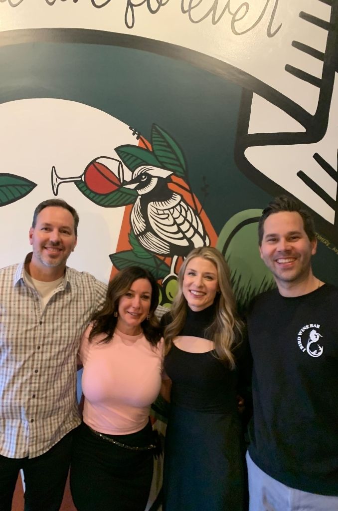 We, Renee, Brody, JT and Danielle (in picture) have poured our hearts and souls into transforming this space into what you see today. We wanted to create a space for shared laughter, meaningful toasts, and the creation of lasting memories – a place where the joy of good company intertwines seamlessly with the pleasure of exceptional wines.